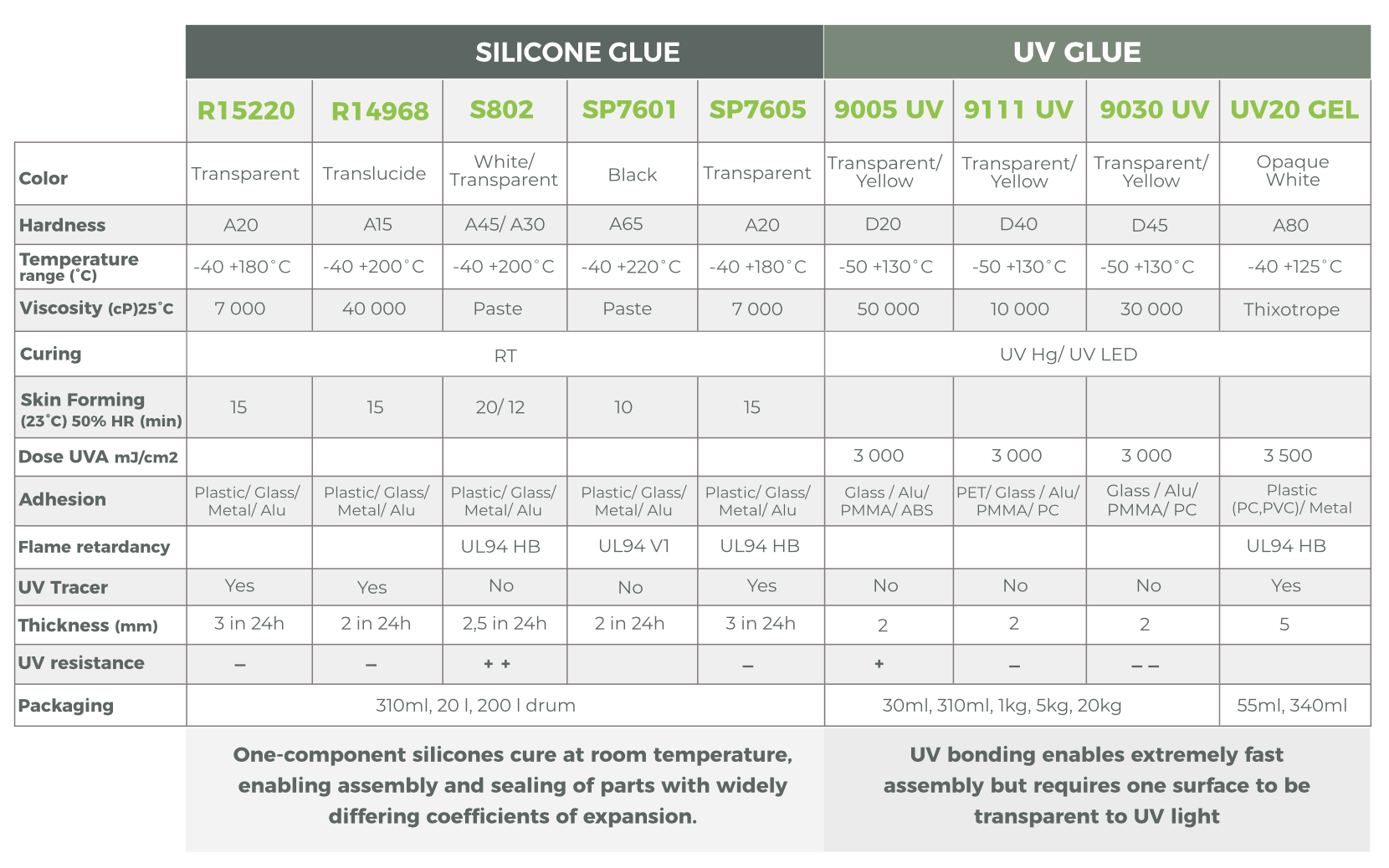 ABchimie offers a broad range of adhesive chemistries and provides expert guidance to help you find the best solution based on your application needs and available application processes.