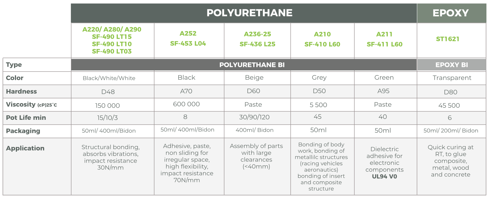 Adhesive bonding is a precise and efficient joining method that offers numerous advantages over traditional mechanical assembly techniques such as riveting, welding, or screwing. It allows for a continuous, uniform bond that distributes mechanical stresses across the entire surface, resulting in enhanced fatigue resistance. This method also enables a lighter assembly, thanks to the low weight of adhesives and the possibility of using thinner materials. Choosing the right adhesive depends on several factors, including: