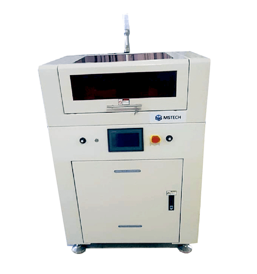 For this purpose, the company PPE (Product Process Expertise) has developed a lamp that the company MStech, via SMT Worldwide, already offers equipment, meeting these strict requirements and allowing, through a differentiated process, to cure materials even at distances up to 20cm height. We were able to test this equipment and the results are stunning. It gives a stable process with a well thought out equipment with options that allow the traceability of each PCB. A real high-tech equipment to see.